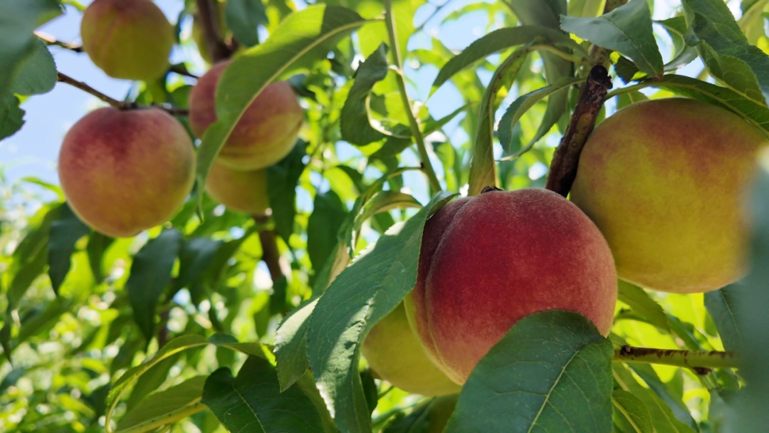 据介绍,桃园总面积达50余亩,品种丰富多样,涵盖中华红桃、苹果桃、小蟠桃、冬桃等,采摘期可从今年5月一直延续到11月。他精心培育的新品种“脆红桃”也即将成熟上市。冯秀华说:“脆红桃口感脆,里面是红的,耐储存耐运输,可以快递发往全国各地。”
