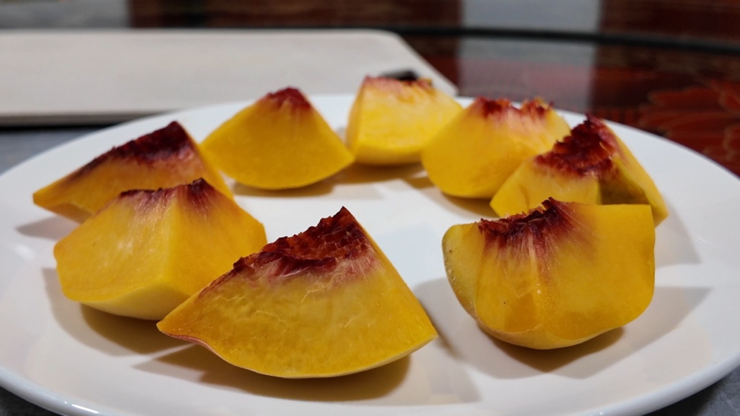 8月1日,记者走进古夫镇平水村桃源生态种植基地,十数亩黄桃缀满枝头,空气中弥漫着清甜的果香。村民甘元军正穿梭在林间,一边忙着采摘一边说:“我专门摘了桃子送人的,一共摘了十几斤。这个桃子好吃,比平时买的都好。”