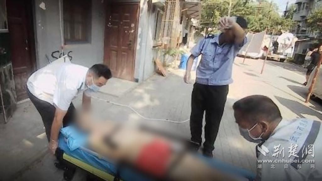 “身体好烫啊!这得赶紧送去医院!”杨克勤当即拨通了120急救电话,待医务工作人员到来后,与其一同用担架把老人从三楼抬入停放在一楼的救护车中。