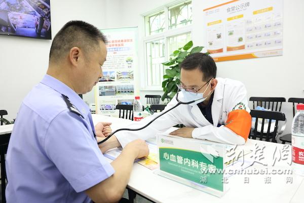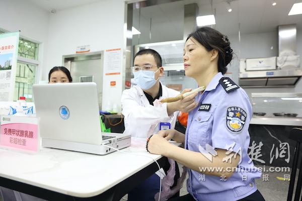 “这位民警同志,是不是经常熬夜值班?平时执勤久站后,有没有腰酸或者头晕的感觉?”签约仪式结束后,来自武汉市中心医院杨春湖院区心血管内科、内分泌科、甲状腺乳腺外科、泌尿外科、康复医学科、疼痛科和妇科的专家受邀来到警营开展多学科联合义诊。针对警务人员的职业特点,专家们认真看诊,耐心答疑,结合常见职业病问题为公安民辅警们提供健康建议,指导他们在工作中合理安排作息、科学膳食,从生活细节守护健康。