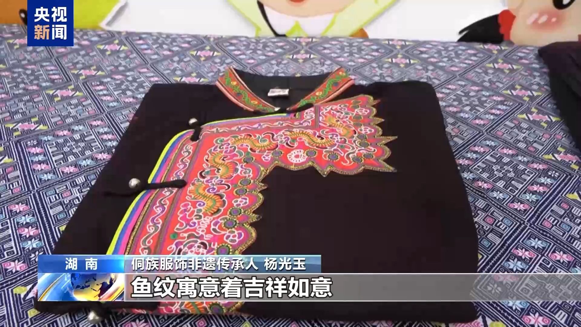 侗族服饰非遗传承人 杨光玉:我们这些侗锦上的每一个图案都像是一个故事,蝴蝶纹象征着侗族的图腾崇拜,鱼纹寓意着吉祥如意,而复杂的几何图案则展现了我们侗家人对自然和宇宙的独特理解。