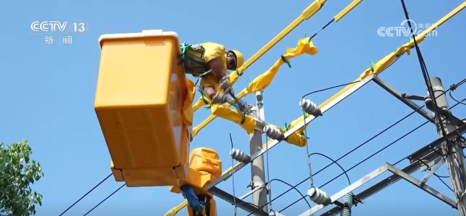 在湖北荆州,电力工人们穿着绝缘服在检修。尽管已避开酷热时段,但每班下来,全身依旧会被汗水浸透。为保证高温作业安全,工会为大家配备了冷藏箱和医药箱,提供解暑饮料和相关药品。