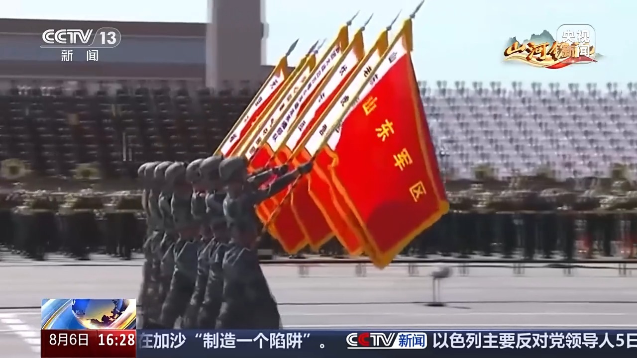 总台央视记者 张仲鲁:2015年9月3日,在纪念中国人民抗日战争暨世界反法西斯战争胜利70周年的时候,老虎营军旗在天安门广场高高飘扬。