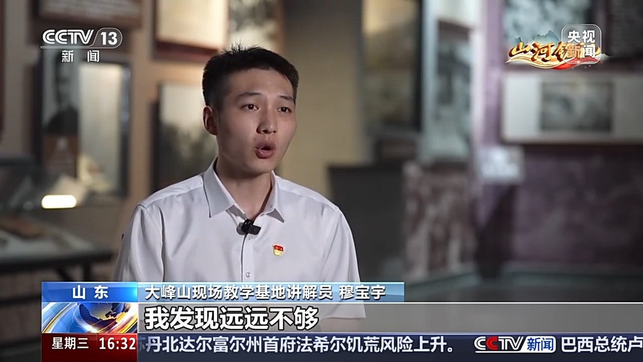 大峰山现场教学基地讲解员 穆宝宇:刚开始我认为,做讲解工作就是把讲解词中的事情原原本本地给大家讲出来就好,但是在我工作的过程当中,我发现远远不够。很多时候,有的人问我,这个人物他的籍贯是哪里、他几几年出生、他是如何去世的、他家里现在还有什么人?我回答不上来。