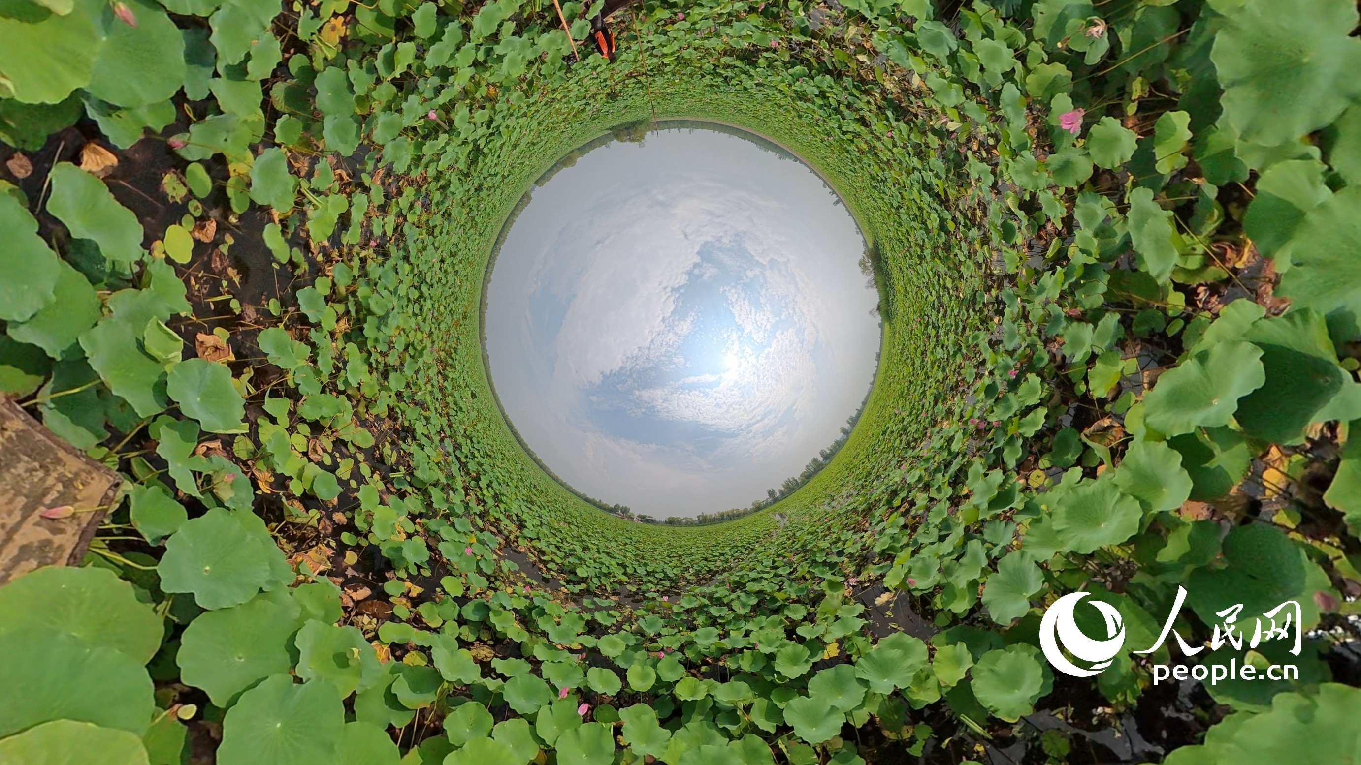 微山湖的万亩荷园。(全景图)人民网记者 王天乐摄