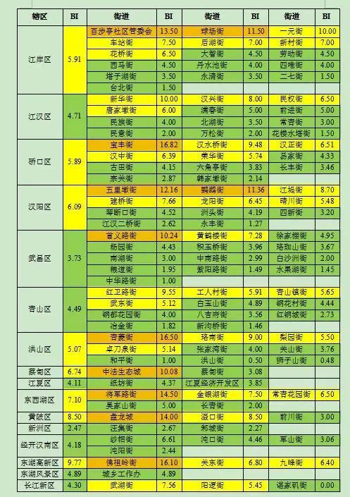 各区、街道布雷图指数请通过下面表格查询: