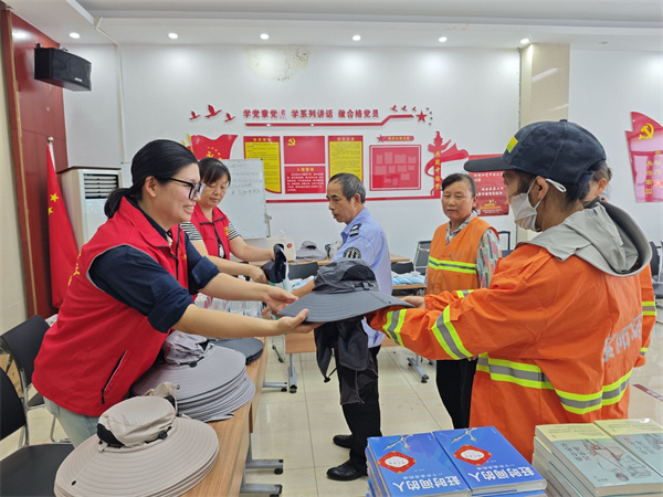 7月30日,“夏日沁心凉 工会暖同行”活动在社区户外工作者驿站展开。工会志愿者分成三组,深入快递站点、建筑工地及驿站,为一线劳动者送上清凉饮品、防晒用品、电动车雨衣等物资,并现场演示中暑急救技巧。驿站内,志愿者与户外工作者拉家常,倾听他们的困难与需求。“这些东西太实用了,感谢惦记!”一位环卫工人接过防暑包,脸上露出朴实的笑容。