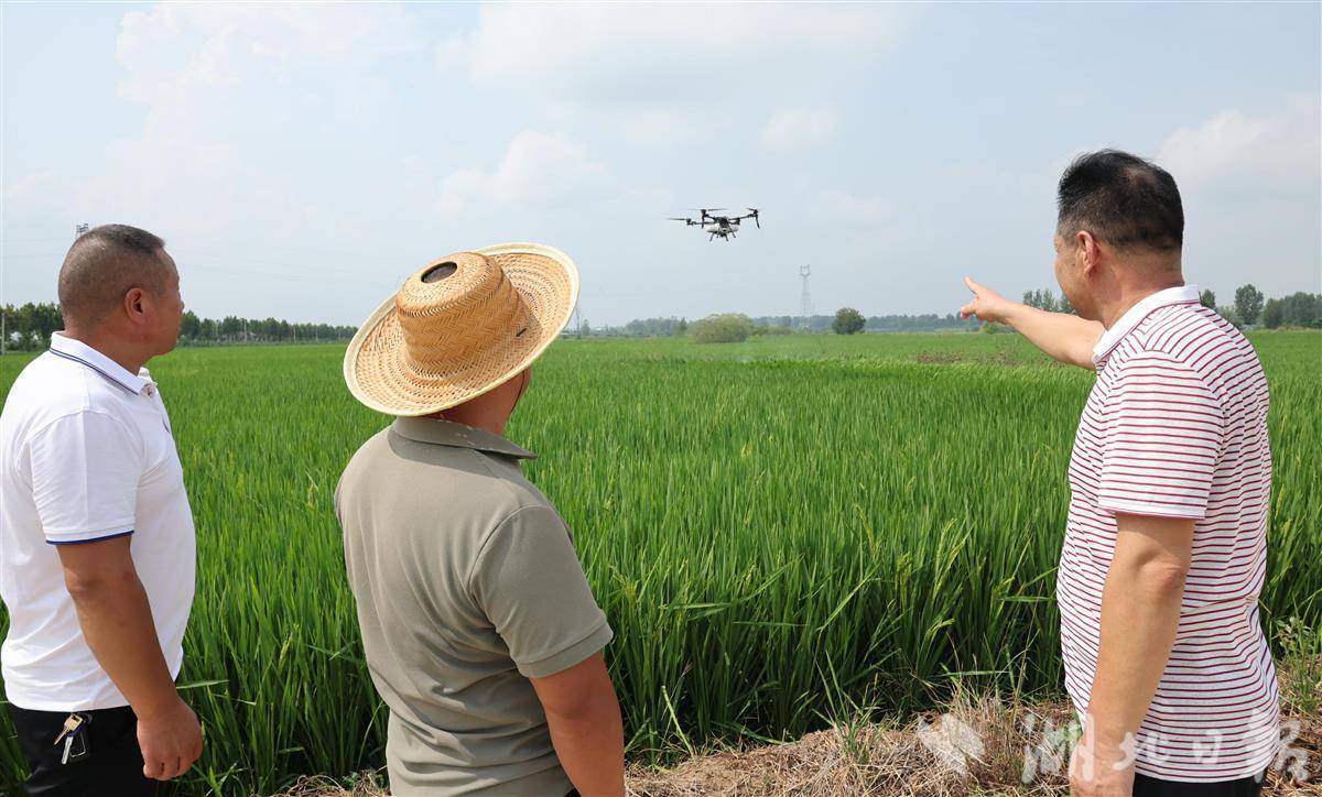 枣阳市持续高温干旱,眼下正值水稻抽穗扬花期和病虫害防控期,全市15个农技小分队巡回在18个乡镇,对种植户传授水稻田间农技科学管理,帮助抗旱确保粮食丰收。