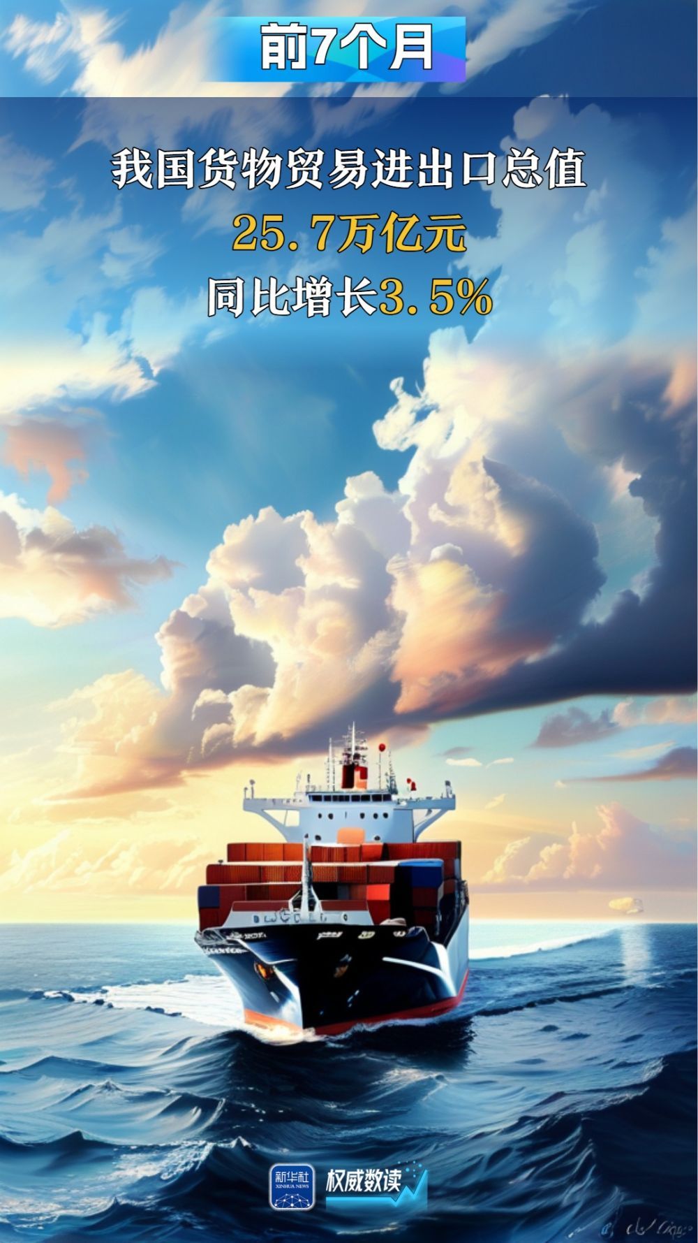 海关总署7日发布数据显示,今年前7个月,我国货物贸易进出口总值25.7万亿元人民币,同比增长3.5%。面对复杂外部环境,我国外贸运行保持向上向好势头,经济运行稳中有进。