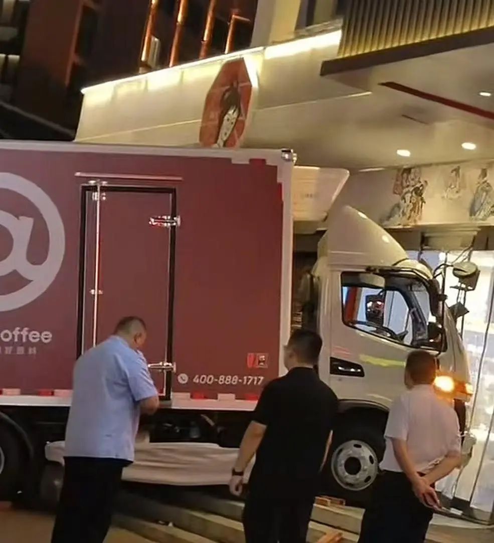 社交平台上流传着多条事发视频,其中一个监控画面显示,8月6日晚上6:36左右,一辆车身印有“库迪咖啡”字样的货车撞向了一家茶颜悦色门店,不少市民试图合力将货车挪动,但无法挪动,当日稍晚,警方、消防人员等来到现场,货车也被围挡起来。
