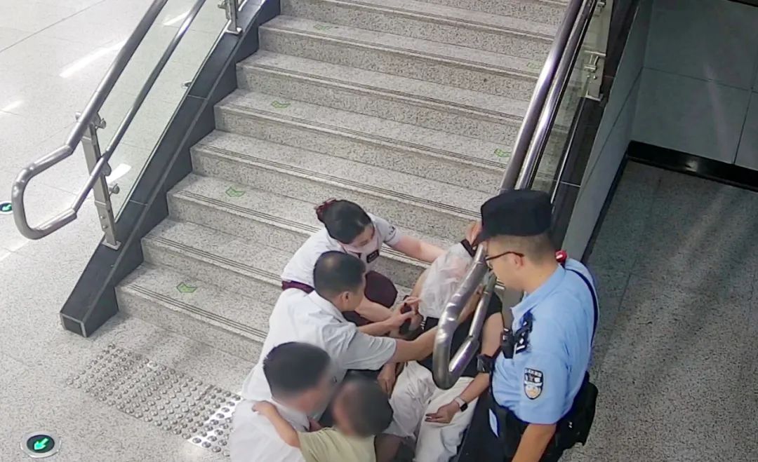 驻站民警则帮忙安抚其家属和哭闹小孩