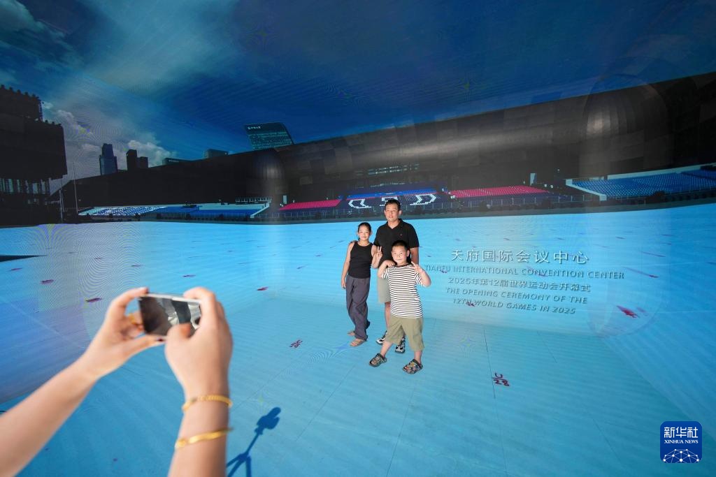 8月7日,在成都东郊记忆·成都国际时尚产业园,人们在有成都世运会元素的沉浸式体验空间拍照。新华社记者 李旭伦 摄