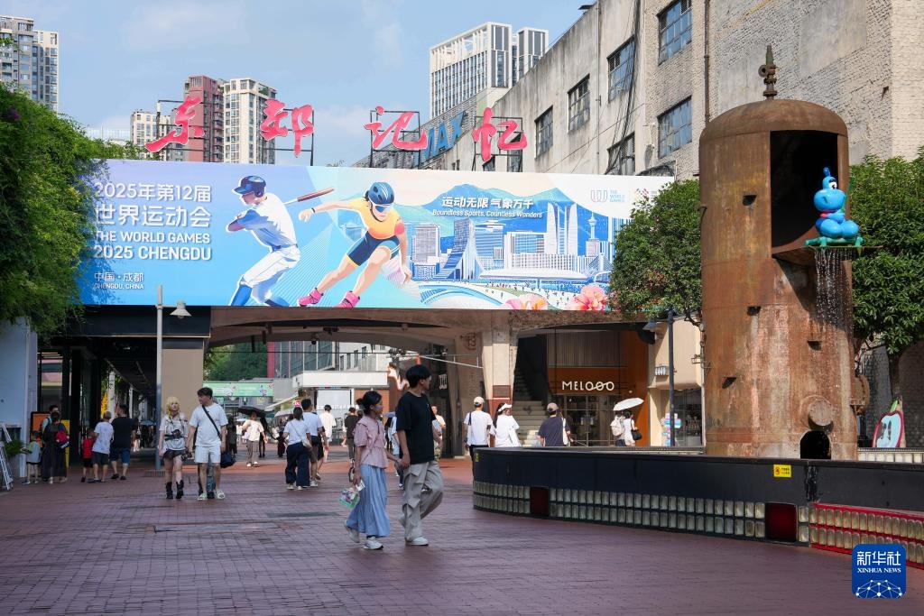 这是8月7日在成都东郊记忆·成都国际时尚产业园拍摄的成都世运会主题海报。新华社记者 李旭伦 摄