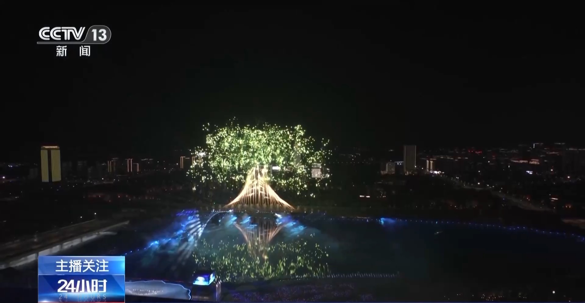 巨型珙桐树焰火中绽放 象征和平与友谊