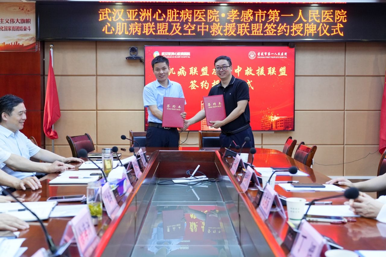 荆楚网(湖北日报网)讯(通讯员 胡佳萍)8月7日,孝感市第一人民医院与武汉亚洲心脏病医院举行心肌病联盟及空中救援联盟签约授牌仪式。这标志着该联盟区域中心又新增一家成员单位,也意味着孝感地区的危重症患者将能通过直升机救援服务获得更为快速、及时、稳定的救治,区域内心肌病患者的医疗服务能力将得到显著提升,同时也标志着两家医院的合作迈入全新发展阶段。