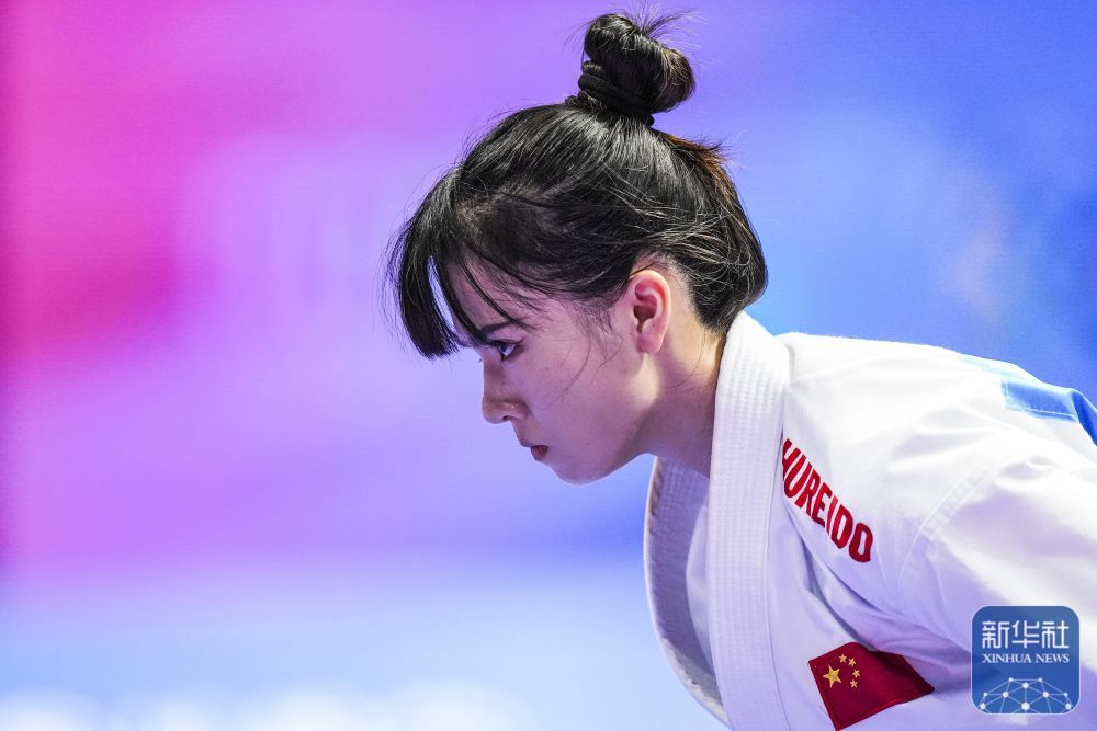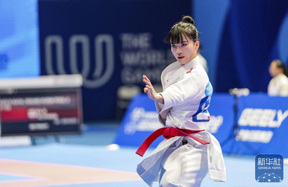 8月8日,2025年成都世运会空手道女子型小组赛在简阳文体中心体育馆举行。
