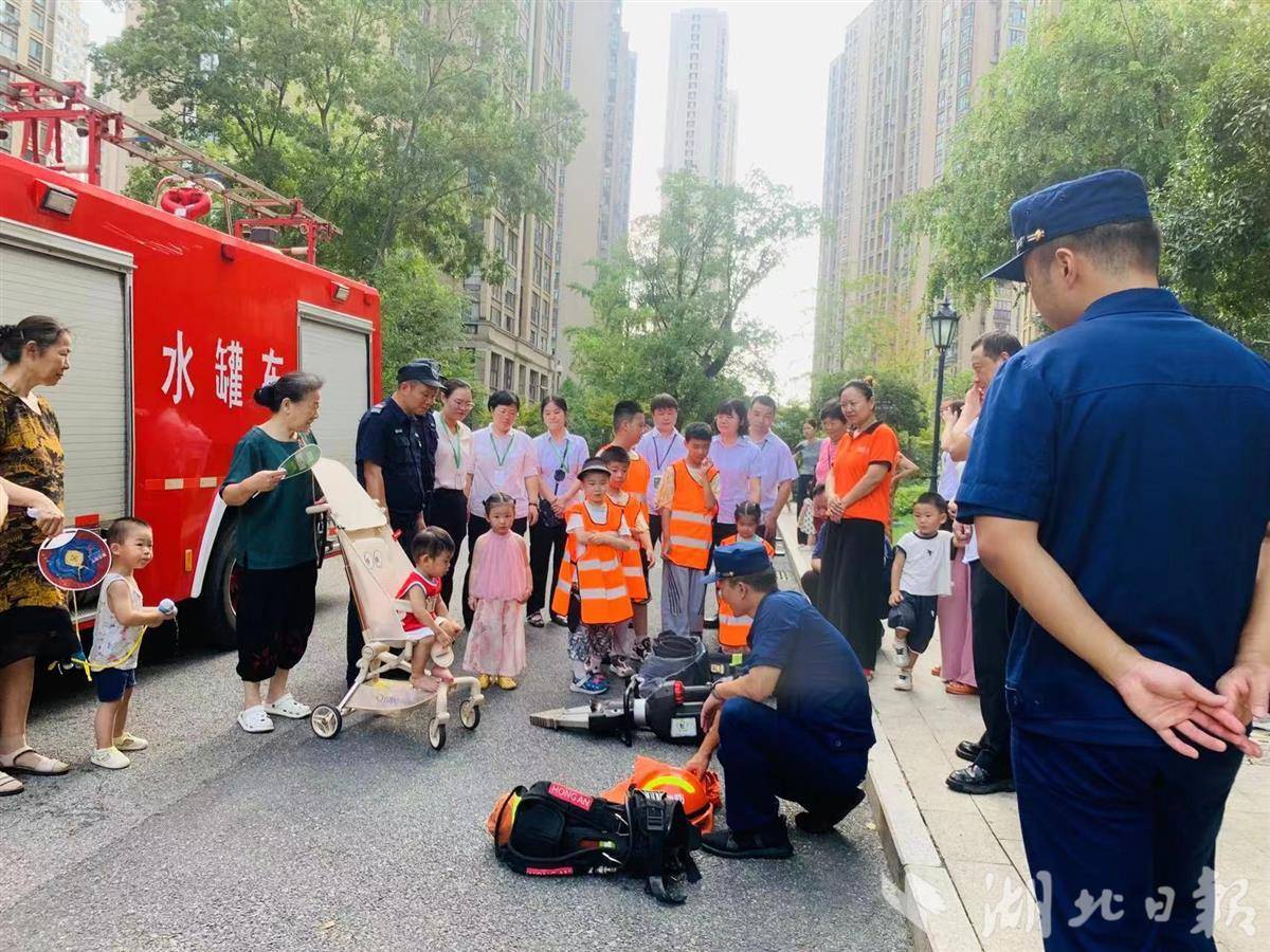 湖北日报讯(记者朱惠、通讯员张华玲)8月7日,武汉市汉阳区星火社区十里新城小区绿城物业联合七里庙消防中队,共同开展“安全童行”主题活动,通过互动体验式教学,为孩子们普及消防安全知识,筑牢社区安全防线,守护美好家园。
