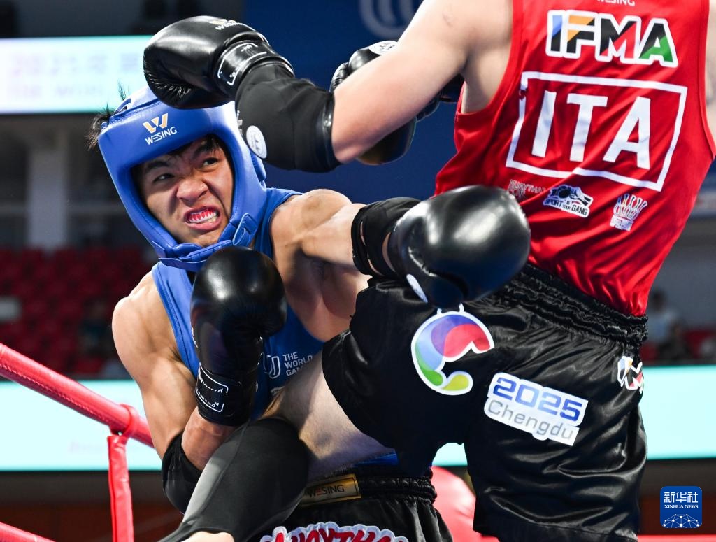 当日,在2025年成都世运会泰拳男子71公斤级四分之一决赛中,中国选手季龙腾不敌意大利选手吉安卢卡·乔治。