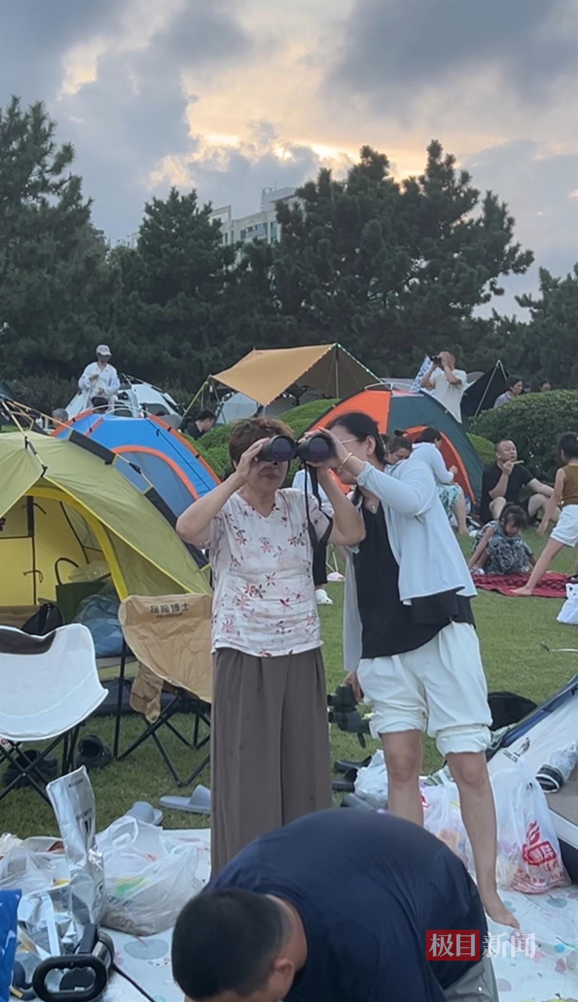 在海岸边,游客早已扎下一个接一个帐篷,绵延百余米。极目记者注意到,许多游客携老带幼,还带来蜜雪冰城、水果和各类零食,在期待火箭发射的同时,欣赏海景、大快朵颐,度过难忘一夜。还有游客带来双筒望远镜,兴致勃勃地看向海面。