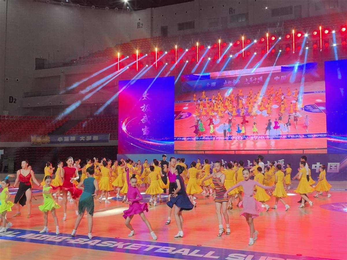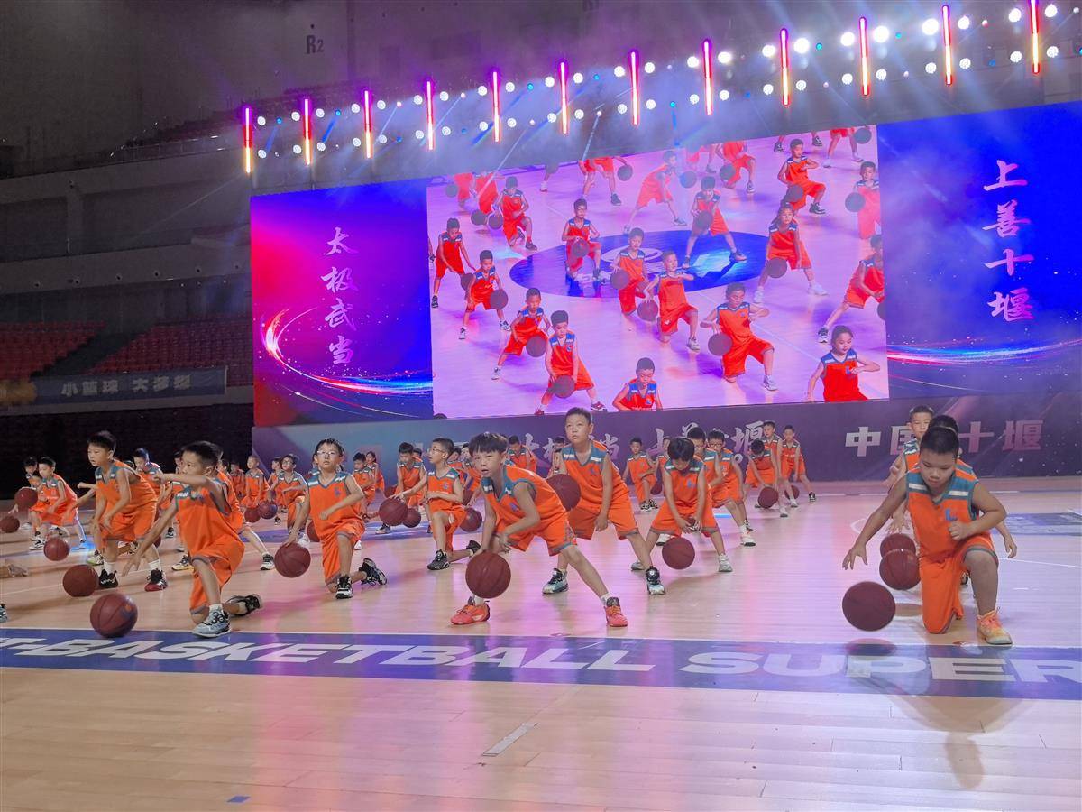 在少儿篮球表演环节,位居第一排C位的是刚满5岁的侯逸南,篮球在他双手之间娴熟转换,丝毫不逊色于同场的一众大哥哥。“彩排和联排时,他的表现都没有今天这么好。”小逸南的爸爸侯洋很是自豪。他告诉湖北日报全媒记者,一个月前把娃送进篮球场,最初兴趣不大,但越打越喜欢,“通过一个月的练习,他的性格更开朗,也更有团队意识和责任感了。”