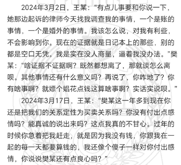 一审判决后,樊某不服上诉,提交了樊某与王某之间的通话录音12段,证明樊某与王某之间并非情人关系,而是性交易关系。