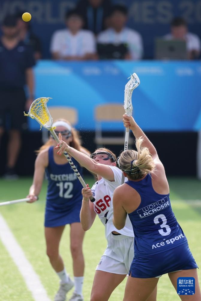 当日,在成都市成都七中东部学校田径场举行的2025年成都世运会女子棍网球预赛B组比赛中,美国队32比8战胜捷克队。