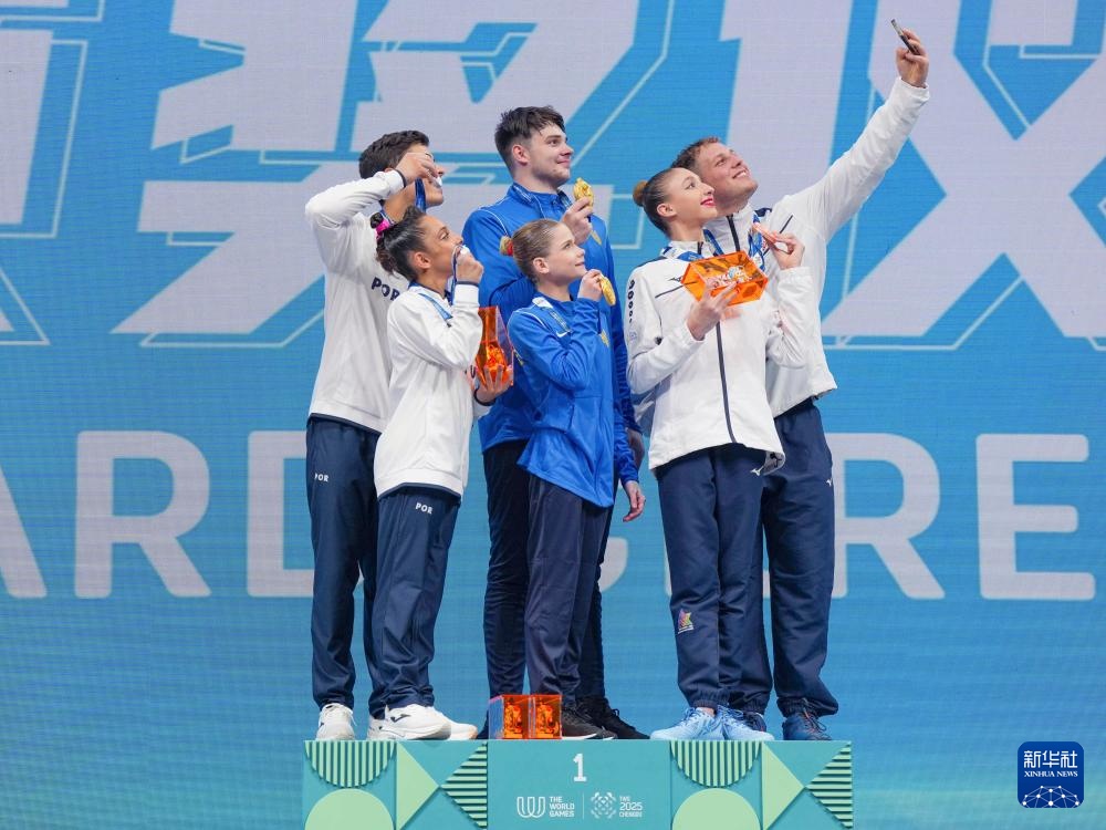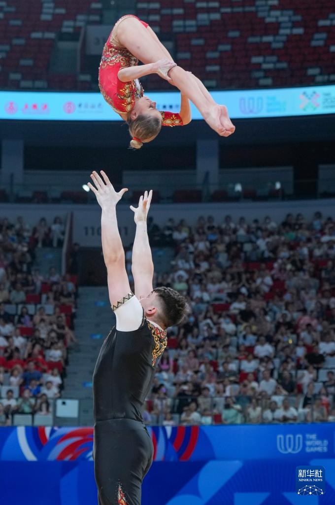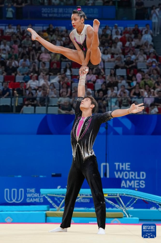 当日,2025年成都世运会技巧混合双人决赛举行,乌克兰组合获得冠军,葡萄牙组合获得亚军,以色列组合获得季军。