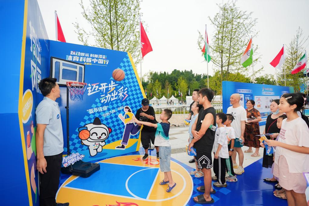 定点投篮、立定跳远、丢沙包……作为世运会举办期间城市文化、体育项目展示与互动的平台,世运广场不仅将各项体育活动化作趣味游戏吸引公众前来体验,并设置科普展板揭秘运动背后的科学原理。通过参与“盖章解锁”,市民们可以在打卡游戏的过程中,学习科学健身知识,感受体育运动的多元魅力。