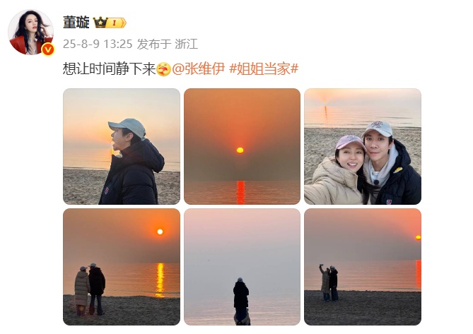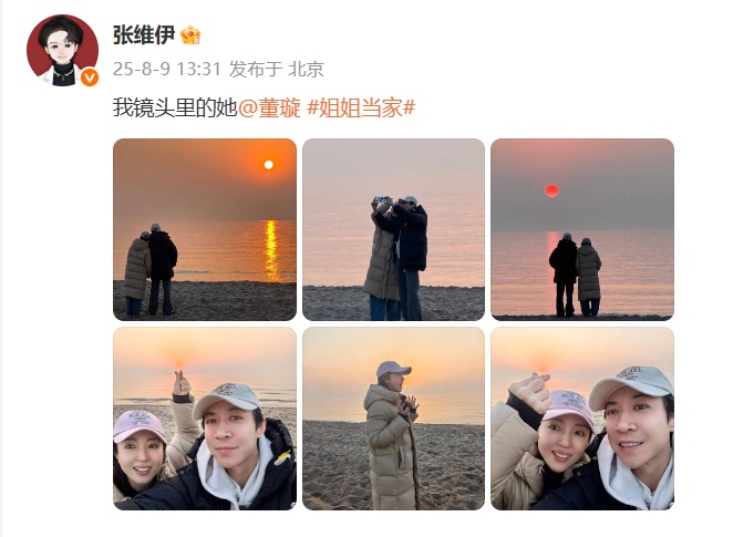 董璇表示:“想让时间静下来@张维伊”,张维伊则写道:“我镜头里的她@董璇”。