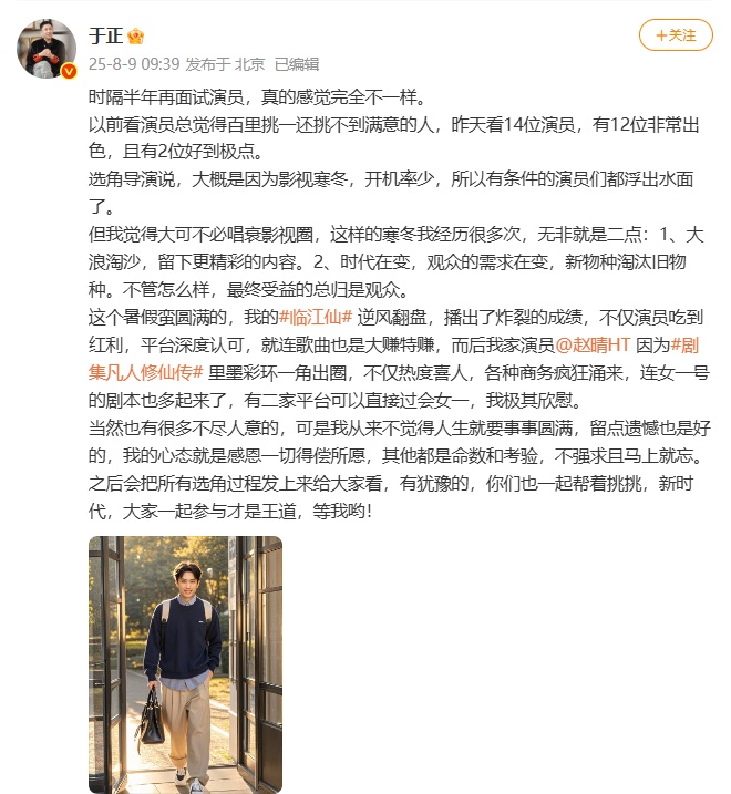 于正称时隔半年再面试演员,真的感觉完全不一样。