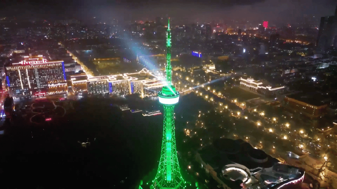 夜幕降临后,两座高塔的光影秀不仅照亮了城市夜空,更点亮了市民的情感记忆。