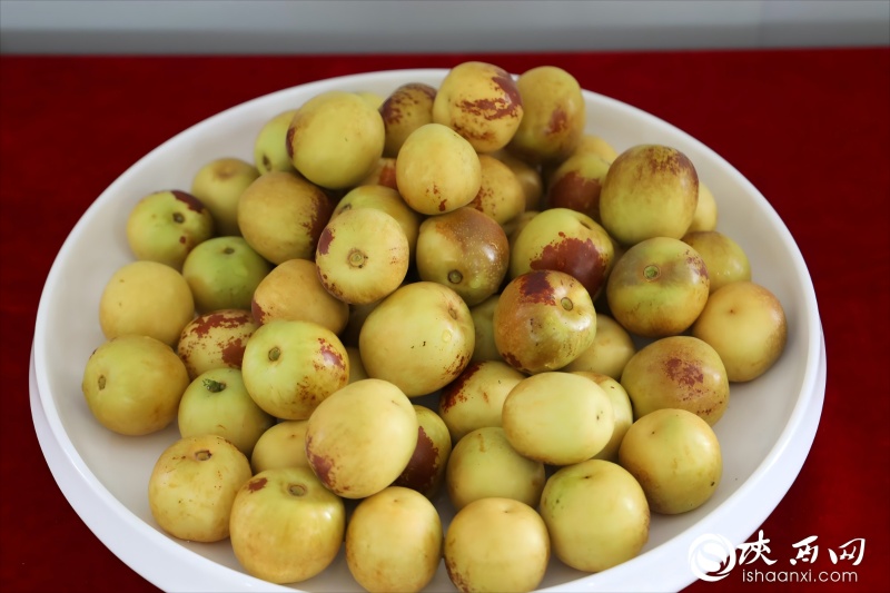 周爱英介绍说:“大荔冬枣具有四大特征,果个大,果实近圆形,平均单果重20克。果面平整光洁,果皮薄而酥脆,完熟期呈浅黄片状赭红色。肉细嫩,果肉乳白色,口感细嫩酥脆。味香甜。品质优势明显。”