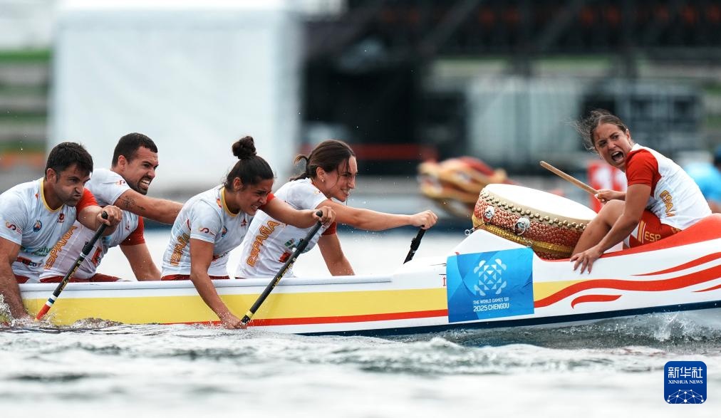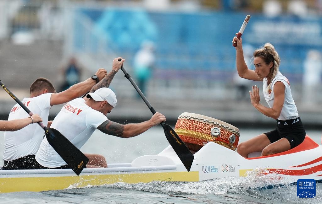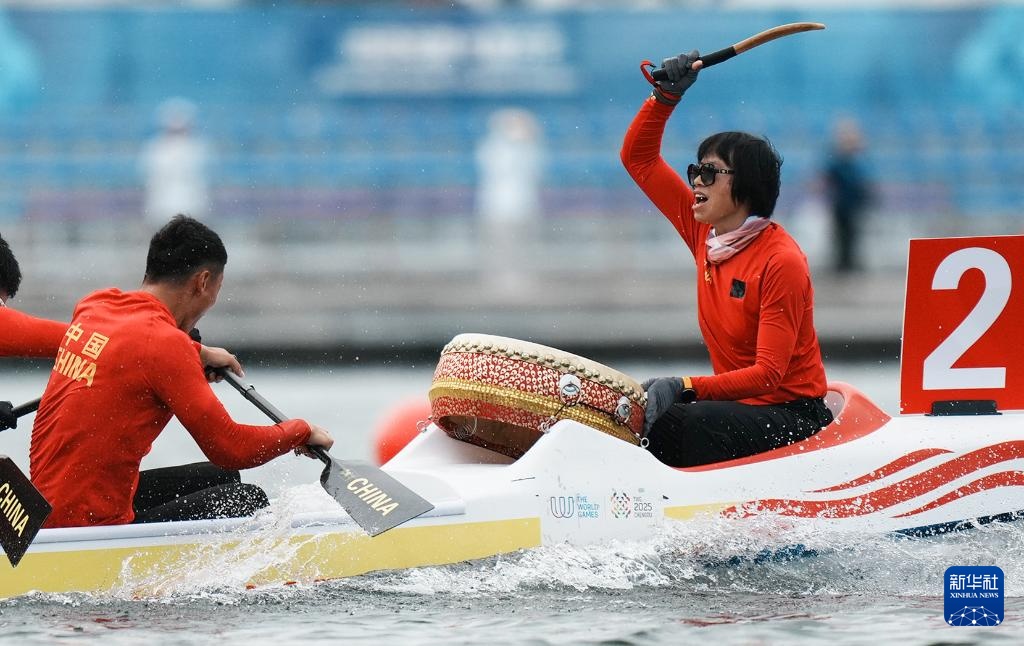 当日,2025年成都世运会龙舟8人座公开组2000米追逐赛决赛举行。