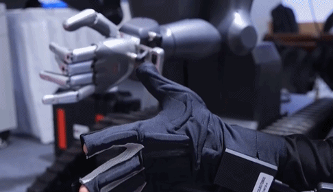 特种机器人可以操作很多人类去不了的场所能够做的一些工作。戴上特种机器人的数据采集手套,机器人的手臂会跟随手做同样的手指的动作。这种机器人重要的地方就在于它的手的灵活性。