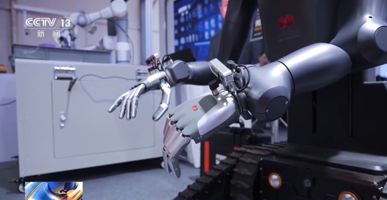 中国科学院自动化研究所研究员 王鹏:这款机器人主要是替代人类的上肢的能力,主要的核心技术还在手的能力上。我们目前采用了仿筋腱驱动的和刚性驱动的、刚柔耦合的这样一个灵巧手的设计技术。既能让灵巧手完成更加通用的动作,又具有更好的柔顺性。