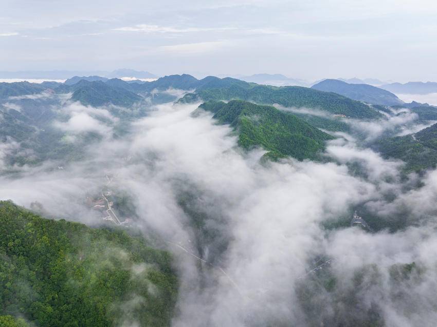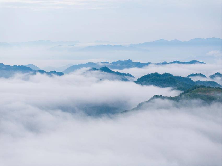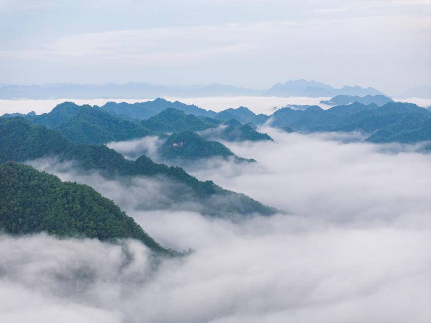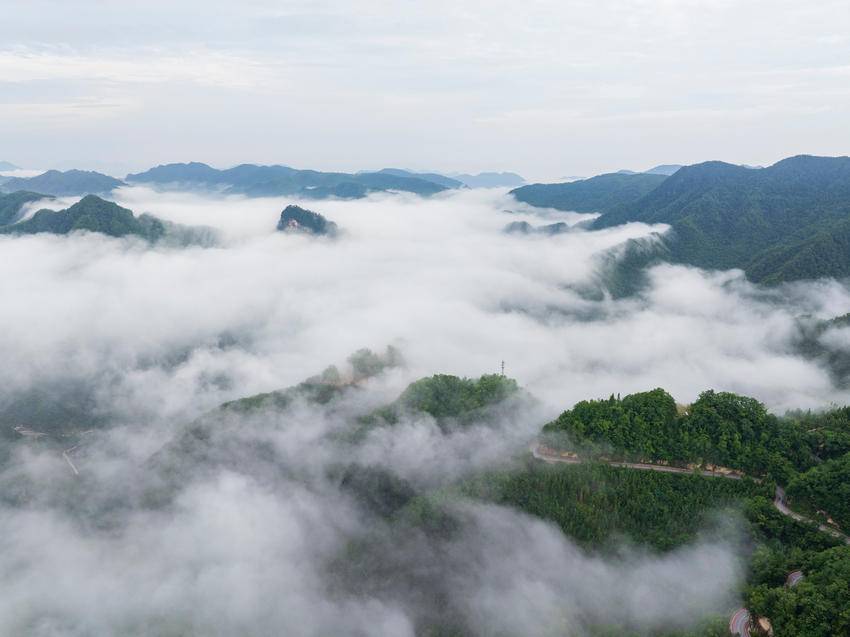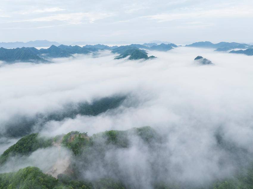 山间云雾时而如轻纱漫卷,缠绕着嶙峋峰林;时而似巨浪奔涌,将错落山岗托入云端。峰峦在云海里时隐时现,仿佛水墨画卷中的写意笔触,引得游人纷纷驻足,用镜头定格这份灵动与壮阔。