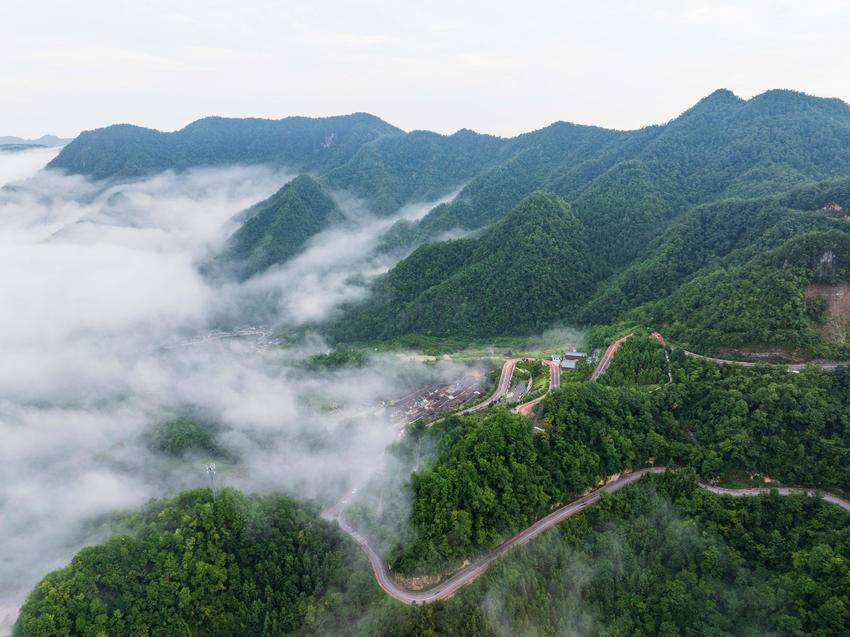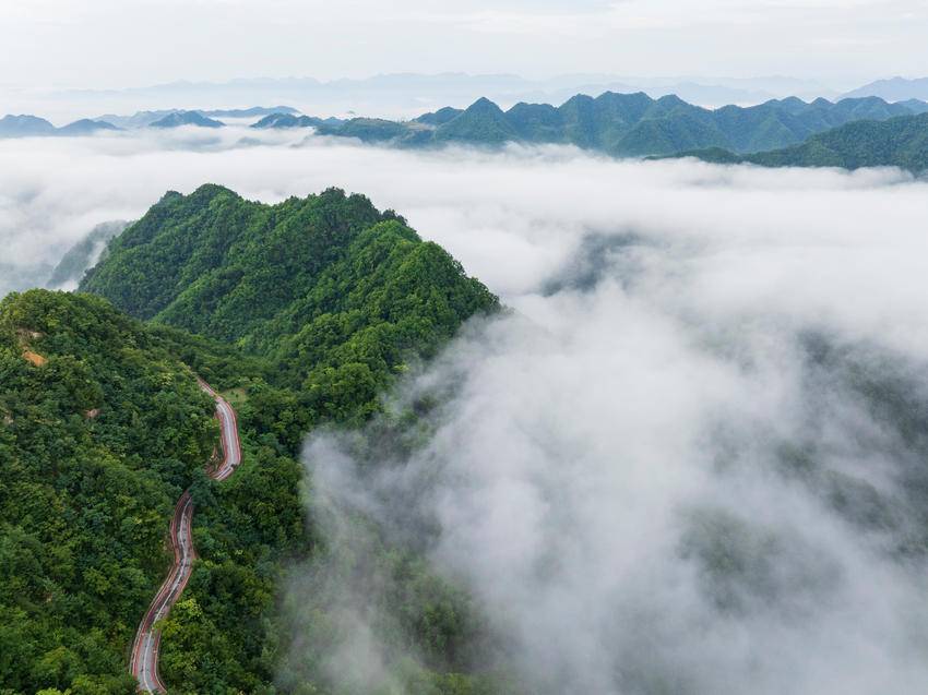 湖北日报客户端讯(通讯员杨韬、袁俊耀)近日,雨后初晴,保康县马桥镇尧治河村出现云海景观,山峦、公路、村庄在云海中若隐若现,宛如仙境,美不胜收。
