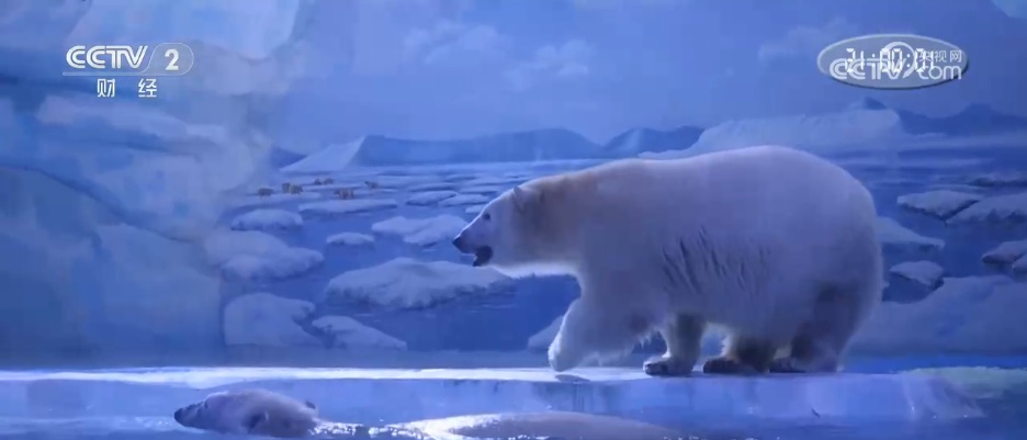 在这里,还可以同时看到地球两极的海洋生物。在企鹅馆,清凉的环境让游客可以专注地了解巴布亚企鹅、也就是白眉企鹅的外形特点、行为特征等等。我们也可以看到,很多游客是趴在玻璃前和企鹅来进行最亲密的接触。在鲸鱼湾,还可以看到像北极熊、斑海豹等动物,还能欣赏白鲸、海象带来的精彩互动表演。