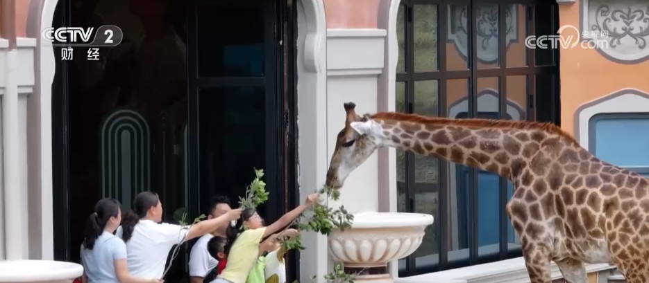 在主题乐园的带动下,周边的酒店也人气高涨。像这样的树屋主题房间,暑期以来,一房难求。几天前,当地还新推出 长颈鹿主题酒店,打造沉浸式文旅消费新场景。