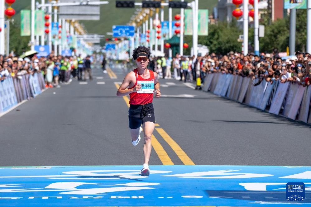 8月10日,中国选手康洋洋在比赛中。他以2小时22分45秒的成绩获得男子全程马拉松亚军。