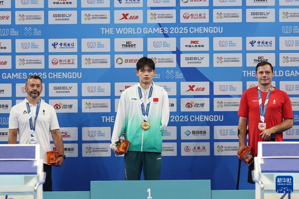 当日,在2025年成都世运会自由潜水男子动态无蹼FFS1-FFS2决赛中,中国选手龙邓喜获得冠军。