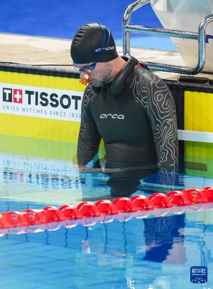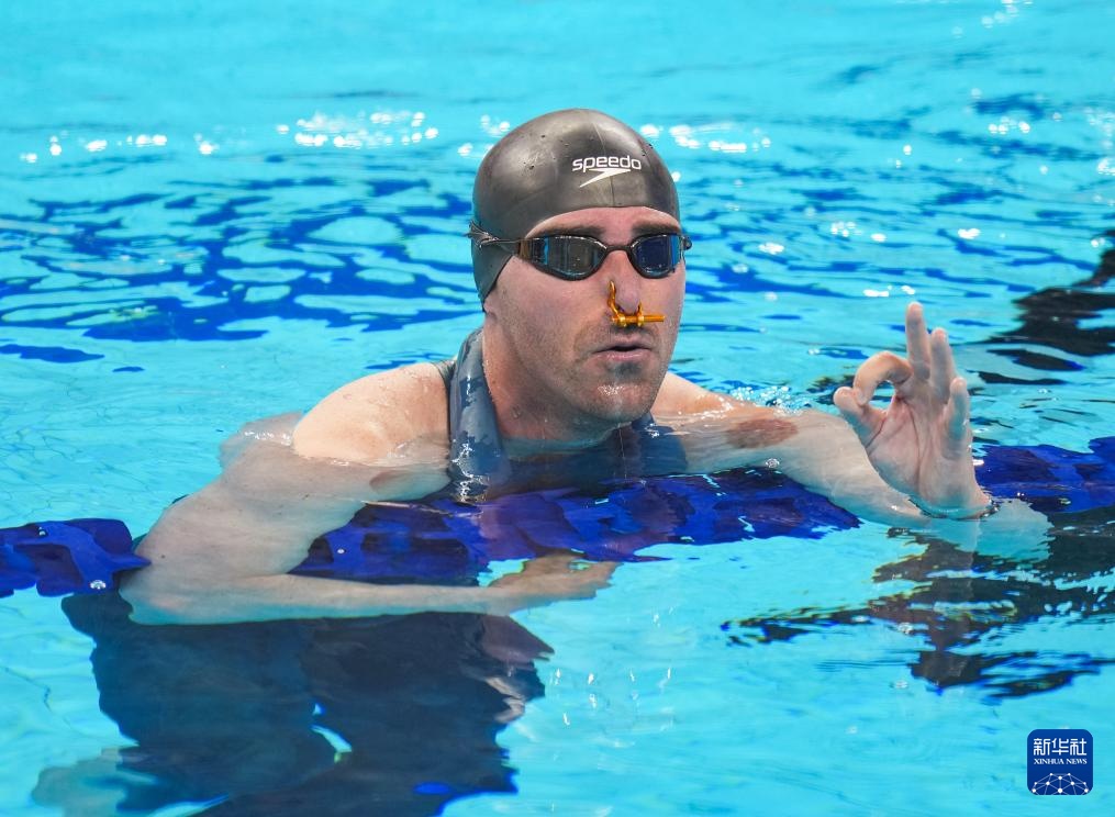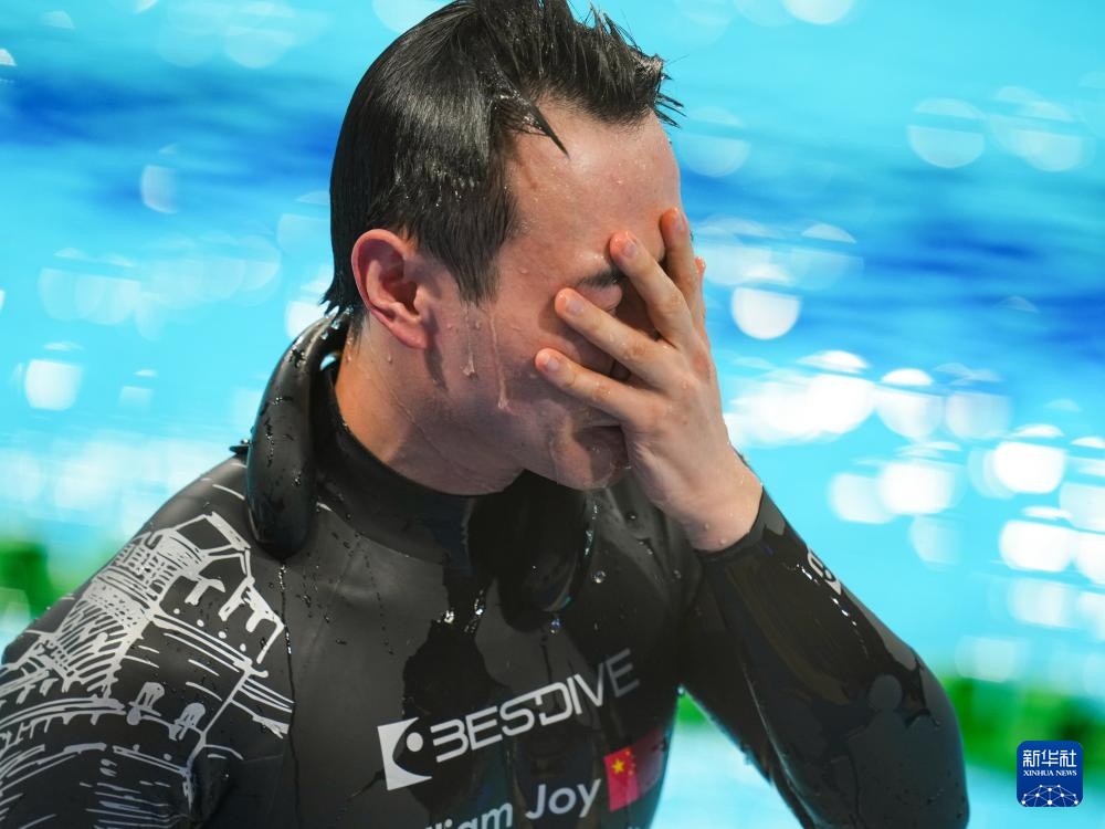 当日,2025年成都世运会自由潜水男子动态无蹼决赛在成都体育学院三岔湖校区举行。