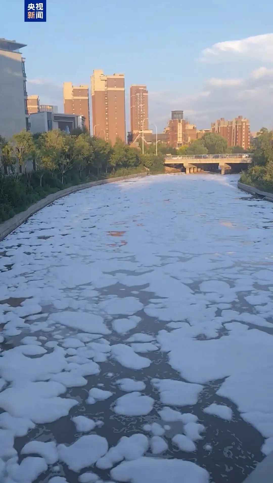 经排查,出现大量泡沫的原因为,该处河段上游一家洗涤日用品生产企业院内临河一侧存放的洗手液生产原料(具有发泡性能),因保管不善进入河道,经“跌水坝”下泄搅动后形成大量泡沫。目前,公安机关配合生态环境部门已对涉事企业开展立案调查。