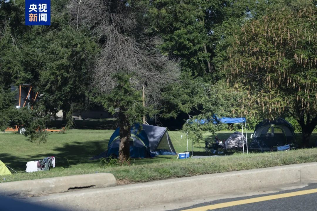 他在帖文中配发了多张市区帐篷营地的照片,显示部分绿地被无家可归者占用的现状。