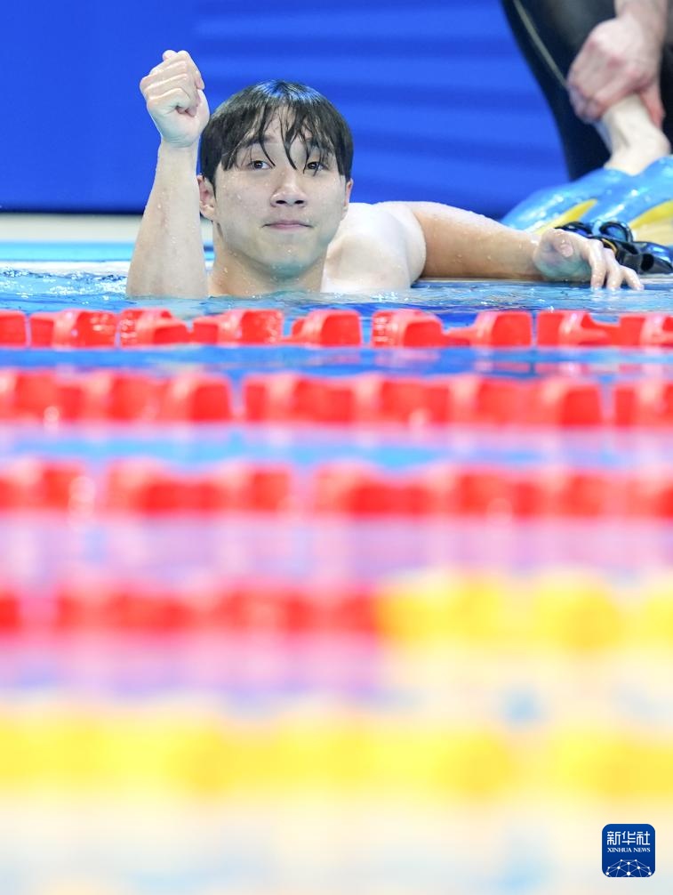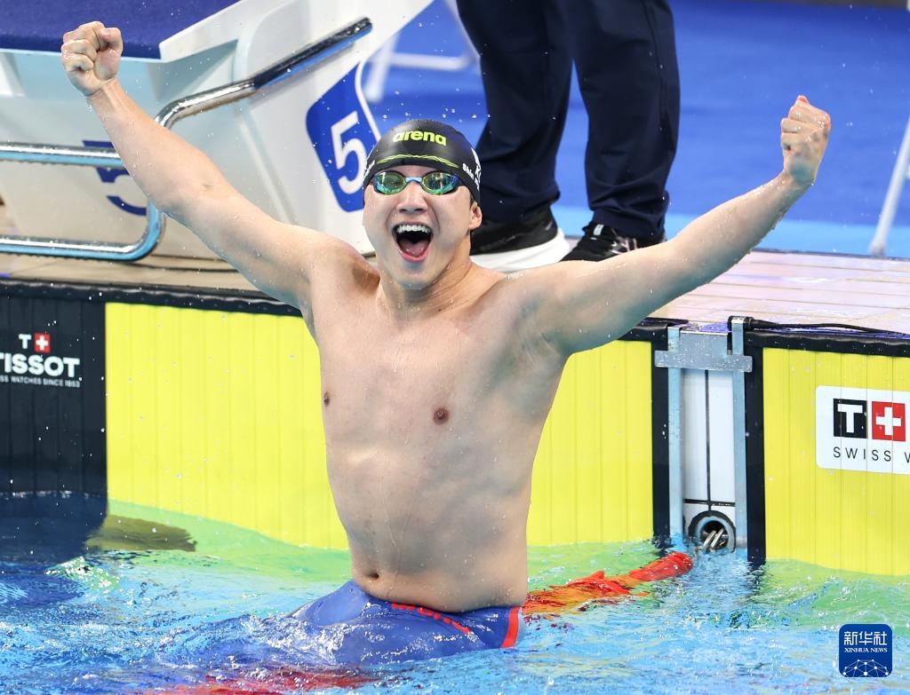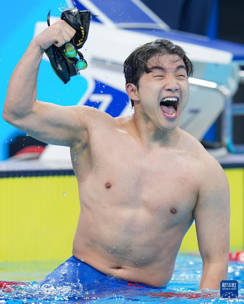 8月11日,韩国选手申明俊(音)在比赛后庆祝。最终,他获得冠军。