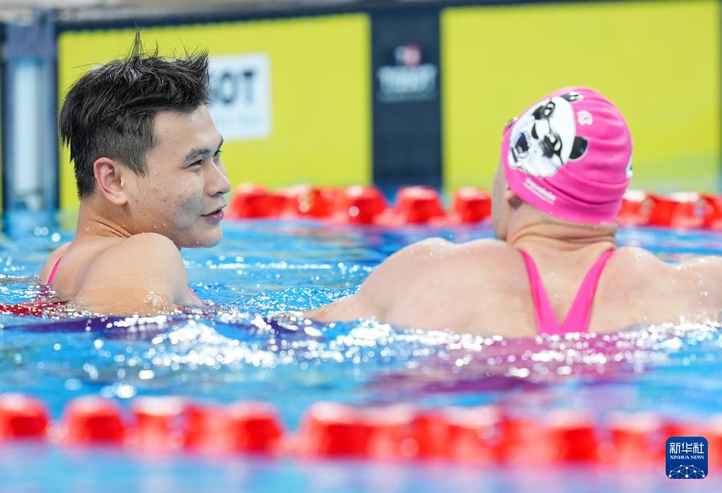 8月11日,中国选手张思骞(左)在比赛后。最终,他获得季军。