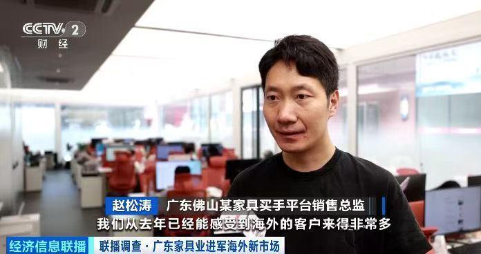 广东佛山某家具买手平台销售总监 赵松涛:我们从去年已经能感受到海外的客户来得非常多,每个月增长是在30%,东南亚的客户居多。