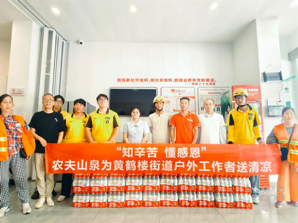 荆楚网(湖北日报网)讯(通讯员 刘兰兰)“这么热的天,这瓶水不仅解渴,更暖心!”外卖骑手小林在黄鹤楼街道新就业群体服务驿站接过冰镇矿泉水时感慨道。近日,农夫山泉股份有限公司走进黄鹤楼街道新就业群体服务驿站,开展“知辛苦 懂感恩”送清凉活动,捐赠100件矿泉水,并在驿站设置1台专用冰箱。现场,外卖骑手、环卫工人等户外工作者们深受感动,纷纷主动加入搬水的行列。这一暖心场景,正是黄鹤楼街道新就业群体服务驿站与新就业群体“双向奔赴”的生动缩影。