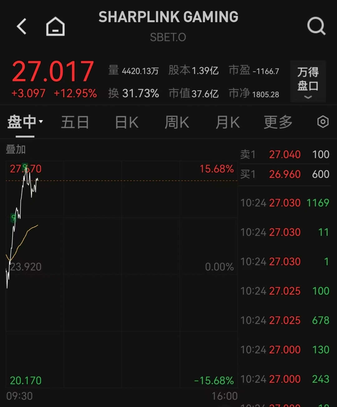 美股加密货币概念股开盘集体走高。截至22:23,BMNR大涨超27%,SBET涨近13%,BTCT、BTBT、聪链集团等涨幅明显。