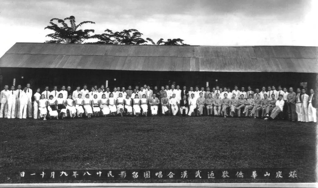 雪兰莪煤炭山华侨欢迎武汉合唱团留影(1939年9月11日)。(《赤子丹心——武汉合唱团南洋筹赈巡回演出纪实》)